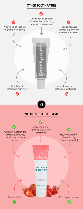 Did you know that store-bought toothpaste is one of the most toxic products in most medicine cabinets? We knew there had to be a safer way to clean and strengthen our kid’s teeth. So when we couldn’t find a toothpaste that met our standards, we created our own that’s free from harmful ingredients like fluoride, carrageenan, and other additives.
