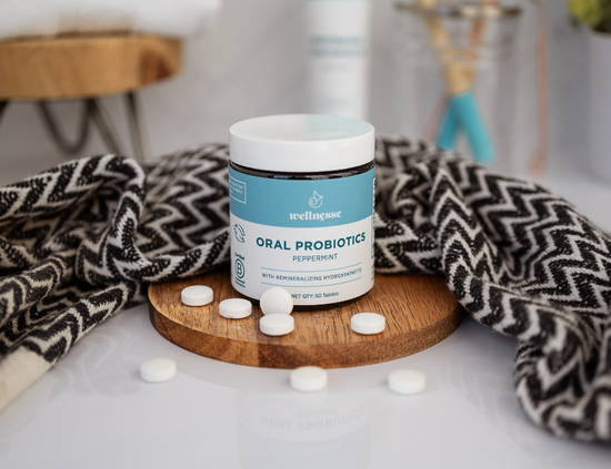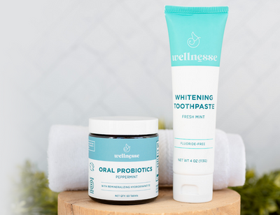 We use a combination of powerful, all-natural ingredients to fight the overgrowth of bad bacteria that cause plaque, tooth decay, gingivitis, and bad breath. By balancing your oral microbiome, Wellnesse Whitening Toothpaste and Oral Probiotics keep your mouth and teeth happy!