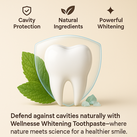 Wellnesse uses Hydroxyapatite to help remineralize teeth, heal cavities and reduce sensitivity in 98% of mouths while whitening over standard toothpaste - in just 60 days!